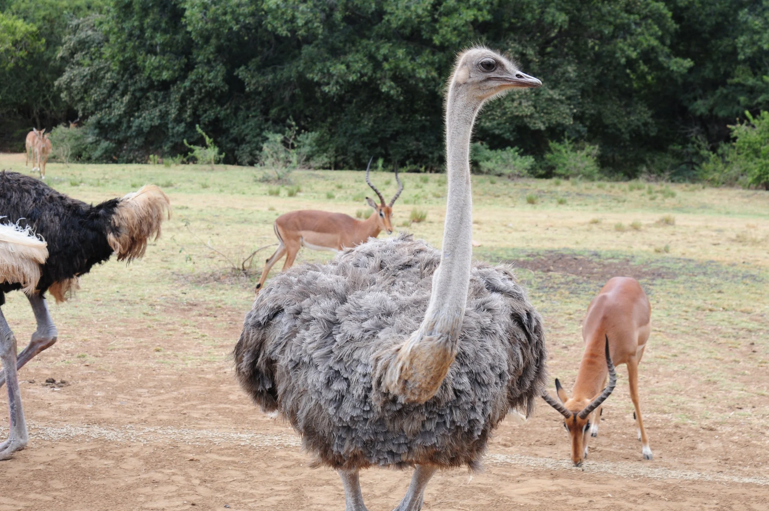 There is a wild life preserve near Johannesburg which is completely isolated and the housing is in small, individual units. Although big cats (lion, leopard, cheetah) and other wild animals are plentiful it was hard to spot them except in farms. Cheetahs that have been orphaned or injured are nursed and then let free after complete recovery. Most of the wild life we photographed were grass eating animals such as elephants, buffalos, giraffe, zebras, & gazelles. Also included were hyenas and wild dogs. It was a lot of fun!